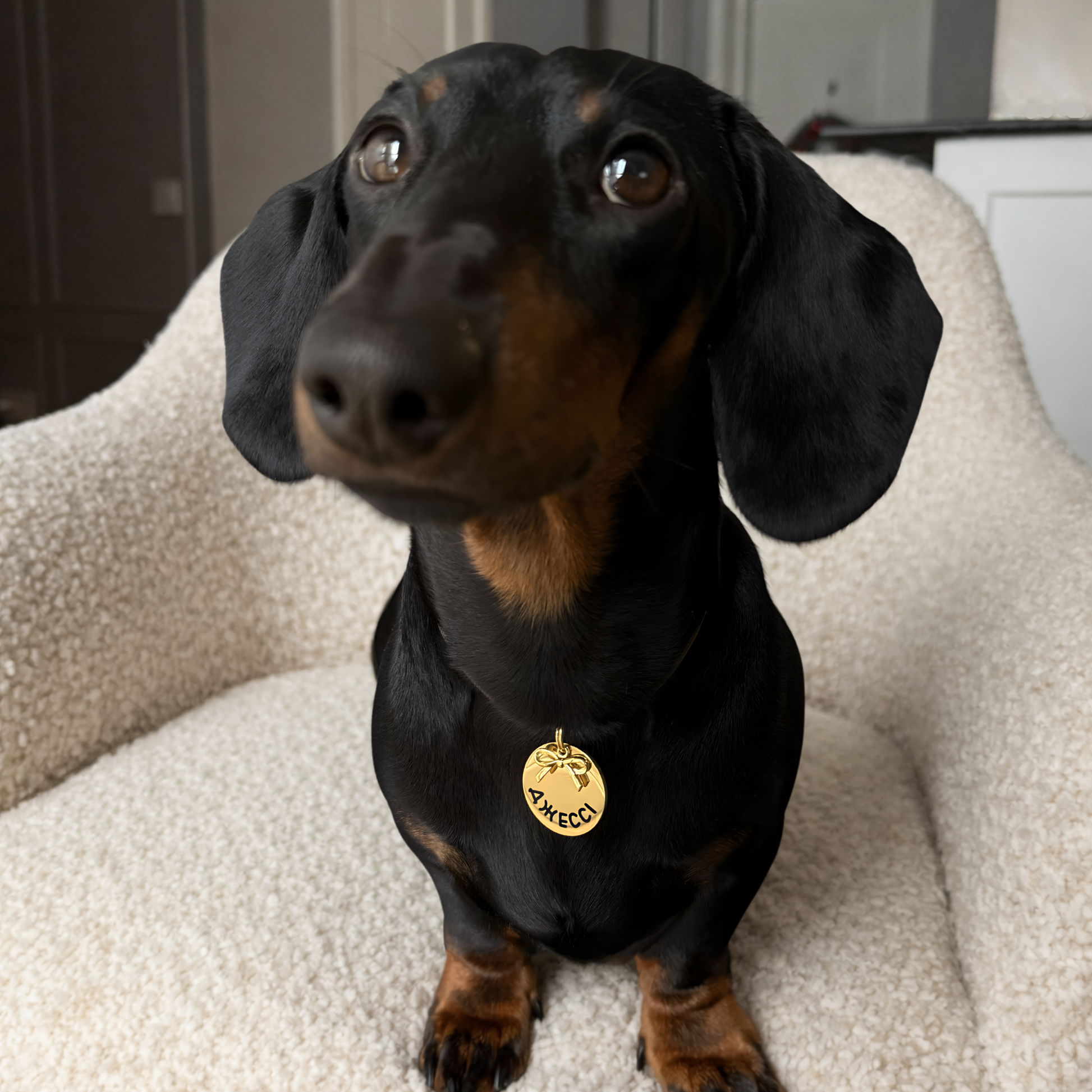 Лицьова сторона адресника: ім'я пухнастого та дизайн