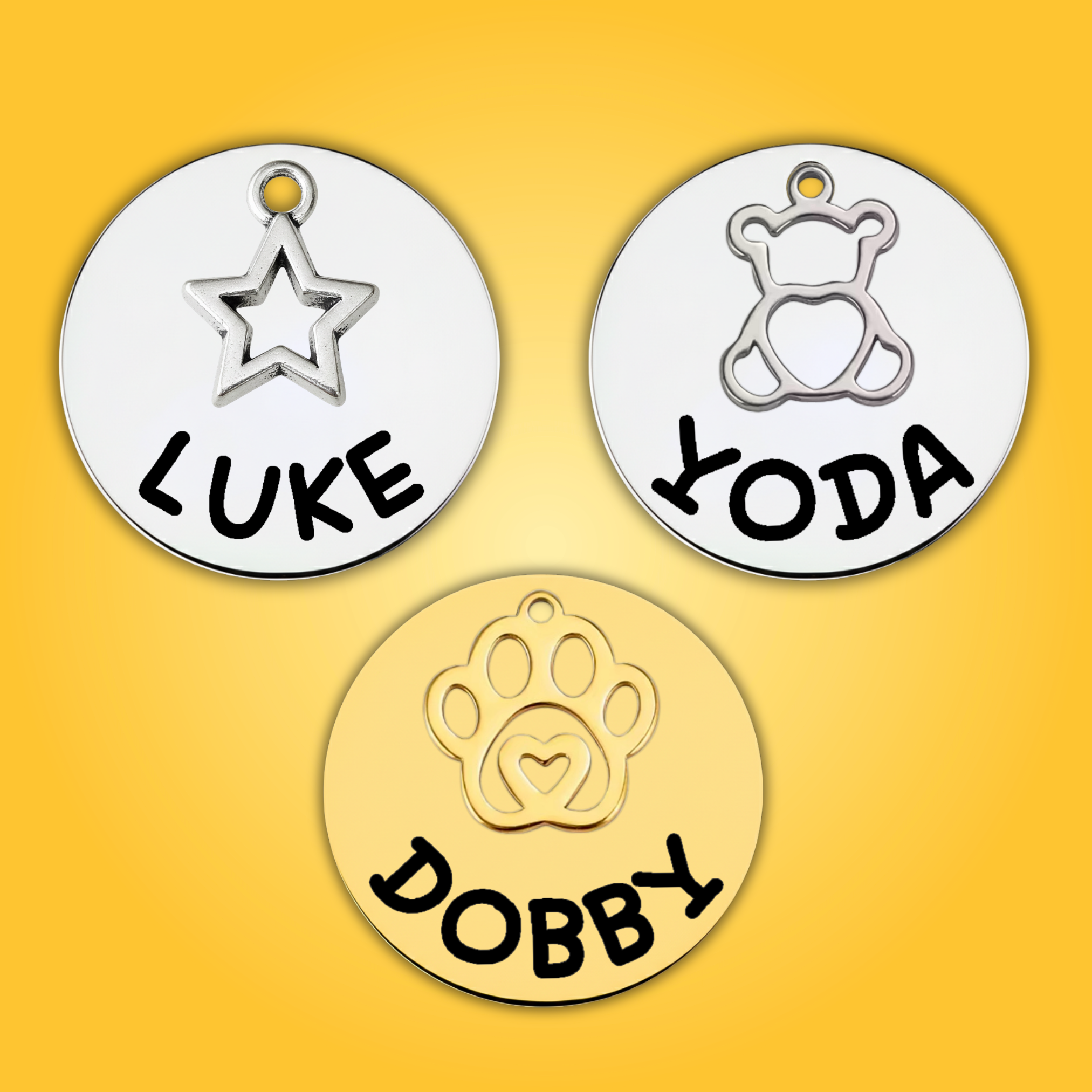 - Ми підбираємо оптимальний розмір букв та цифр залежно від дизайну, довжини імені та розміру адресника.